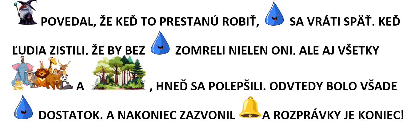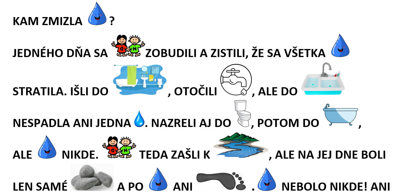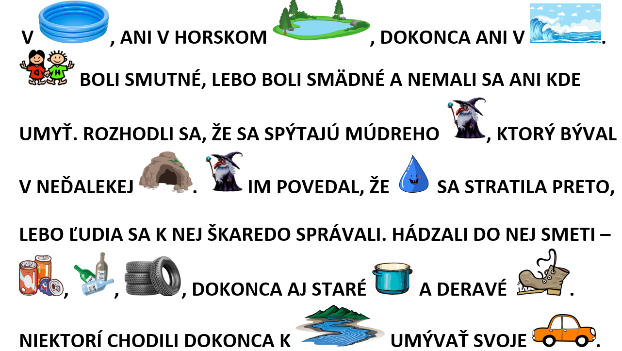 – tvorba spoločného príbehu na tému ochrany vody a vodných tokov. Spracované ako maľované čítanie.